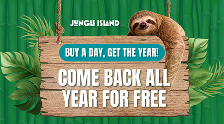 General admission includes full access to Jungle Island, Treewalk Village, playgrounds, numerous wildlife sightings including wallabies, birds, sloths and more, Everglades habitat, and educational animal shows.